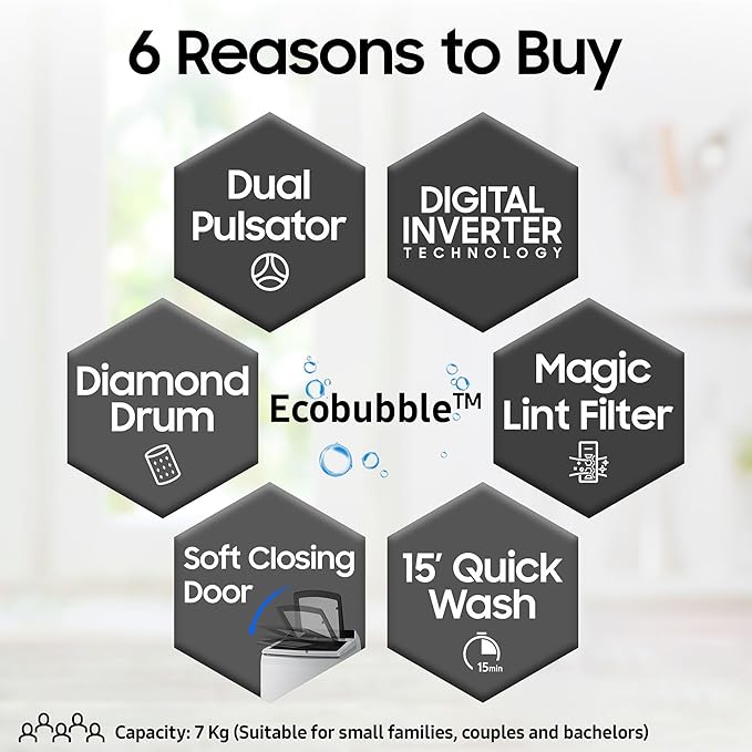 Samsung 7 kg, Eco Bubble Technology, Digital Inverter Motor, Soft Closing Door, Fully-Automatic Top Load Washing Machine